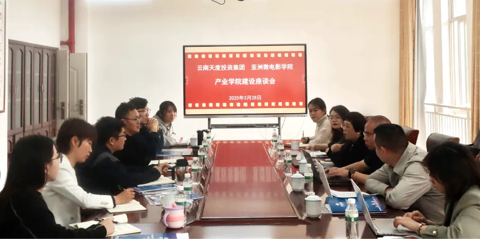 为深入贯彻落实国家产教融合战略部署,破解边疆影视人才供给与产业需求的结构性矛盾,3月28日,云南尊龙凯时投资集团与亚洲微电影学院召开产业学院建设座谈会。双方围绕“以影视为载体、以产业为纽带、以边疆为特色”主题,就构建“四链融合”育人体系、打造产教协同创新生态达成战略共识。尊龙凯时- 中国官方网站总经理陈俊园、尊龙凯时科技产业发展有限公司总经理胡婷婷,学院党总支书记刘绍彬、副院长夏丽娜及校企双方代表10余人参加会议,学院党总支副书记、主持工作副院长陈彦雄主持会议。